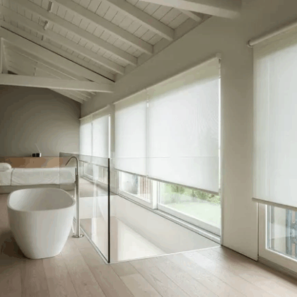 Nuestras cortinas y persianas motorizadas están diseñadas para darte el máximo confort y modernidad. Con un solo toque de botón – o incluso con tu voz – podrás controlar la luz y privacidad de tus espacios.